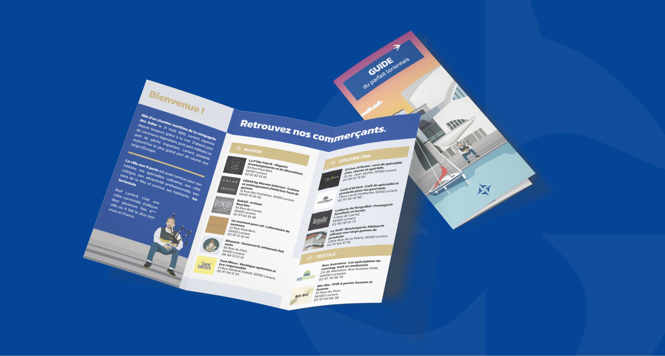 Imm Horizon, agence immobilière lorientaise, valorise le territoire à travers 11 illustrations uniques, déclinées sur différents supports de communication. Son Guide du bon Lorientais, réalisé en collaboration avec des commerçants locaux, reflète un fort attachement à la culture, à la communauté et au dynamisme régional.