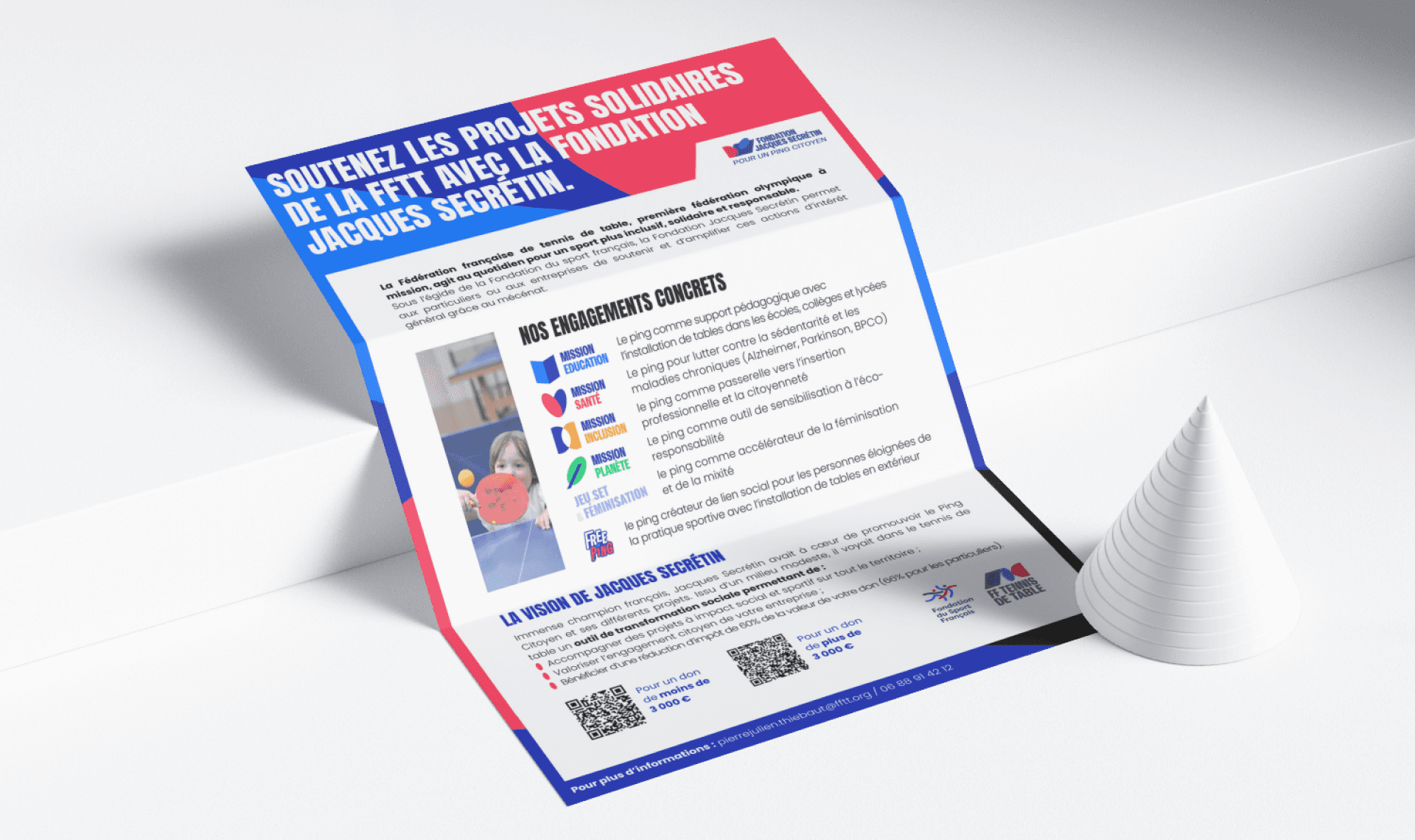 La Fondation Jacques Secrétin souhaitait relancer un projet laissé en suspens depuis plusieurs années : structurer un support clair et attractif pour développer le mécénat. Aux côtés de Pierre-Julien, directeur marketing, j’ai accompagné la fondation dans la création complète de sa brochure, à partir de zéro, sans modèle existant.